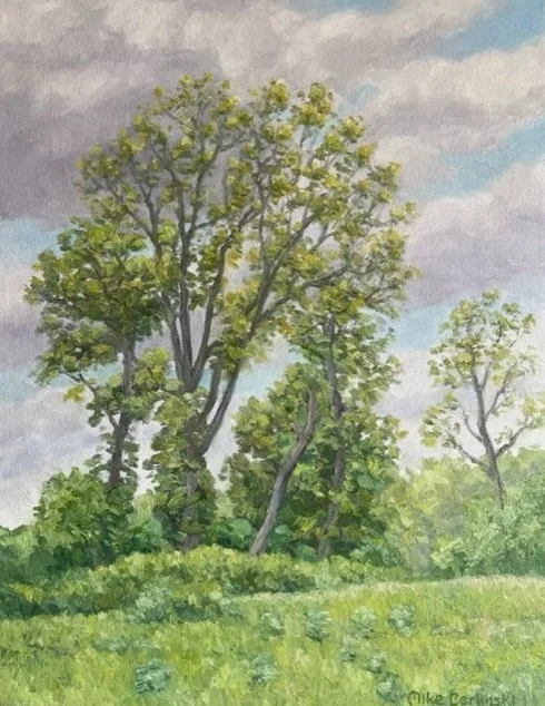 Painting spring greens, watercolor landscape class. Learn to paint representational landscapes from reference photos by using information you gathered from life. This session is packed full of information on color mixing, observing, drawing for watercolor, and creating value studies. This session will take place mostly indoors working from photo references, but we will use the outdoor views when weather permits to make small studies from life. Photo references limit you and leave you asking a lot of questions, painting from life will help you find some of those answers. We will discuss how to work around the limitations of painting from photos and how to create a painting without being restricted by the reference. Each class features a demo and time for students to work on their own paintings.